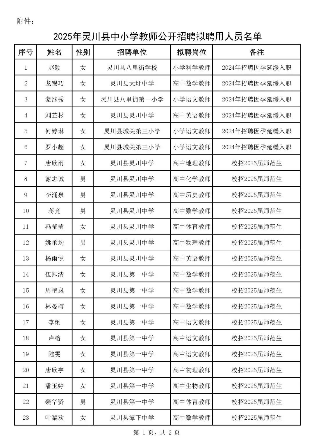 附件:2025年靈川縣中小學教師公開招聘擬聘用人員名單