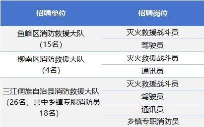 為滿足社會經(jīng)濟(jì)迅速發(fā)展對消防力量的需求,積極適應(yīng)新形勢新任務(wù)新要求,結(jié)合單位編制及工作情況需要,柳州市消防救援支隊擬面向社會公開招聘政府專職消防員、鄉(xiāng)鎮(zhèn)專職消防員,熱忱歡迎熱愛消防、銳意進(jìn)取、敢于挑戰(zhàn)的廣大有志青年加入。詳情如下: