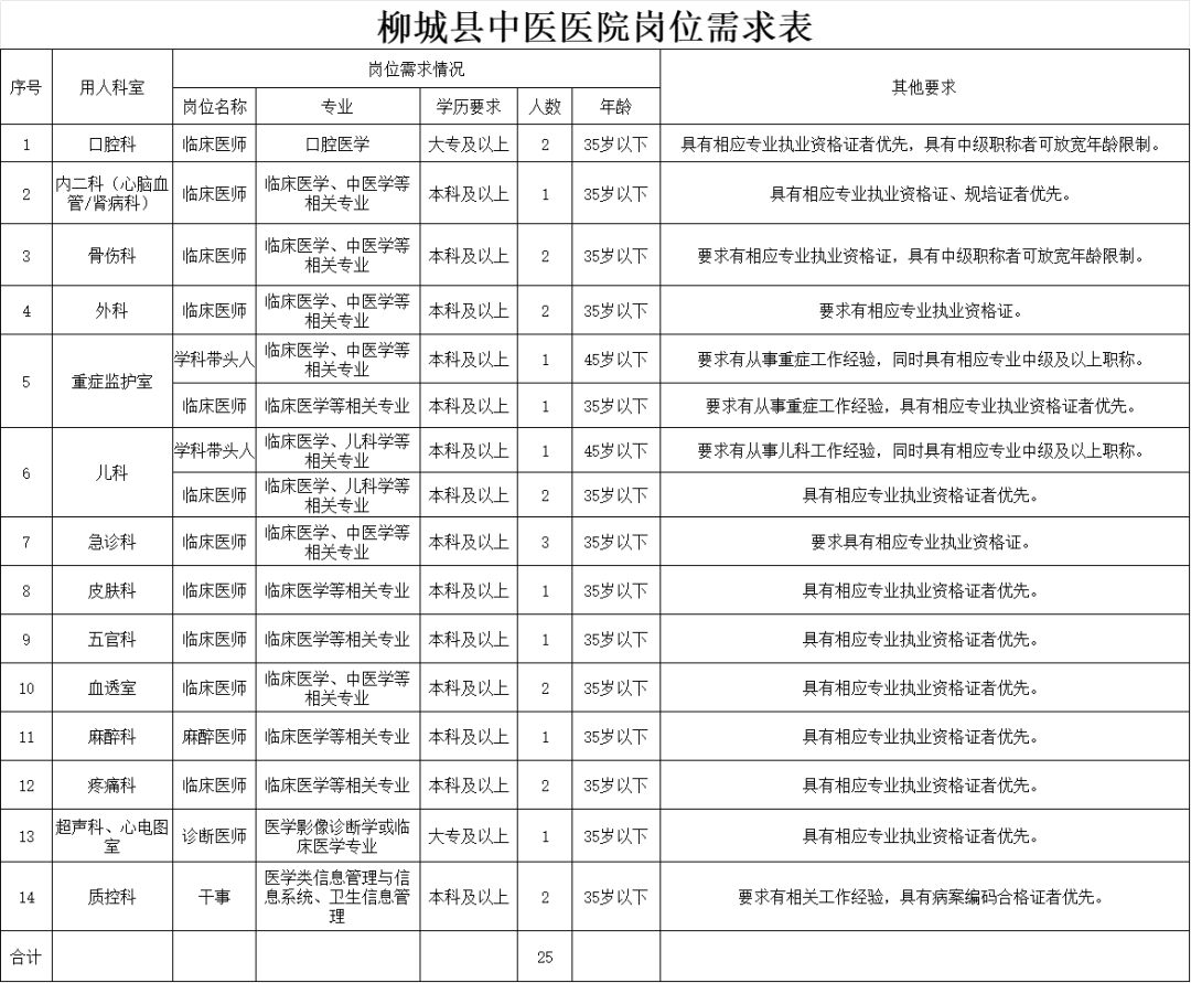 2025年柳城縣中醫(yī)醫(yī)院多個(gè)崗位正在招聘