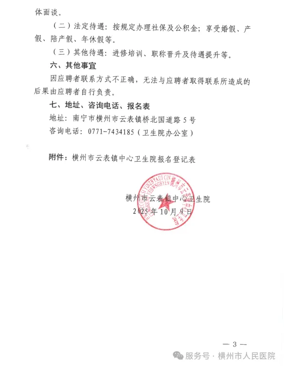 原文標題:2025年橫州市云表鎮(zhèn)中心衛(wèi)生院公開招聘編外衛(wèi)生專業(yè)技術(shù)人員的公告