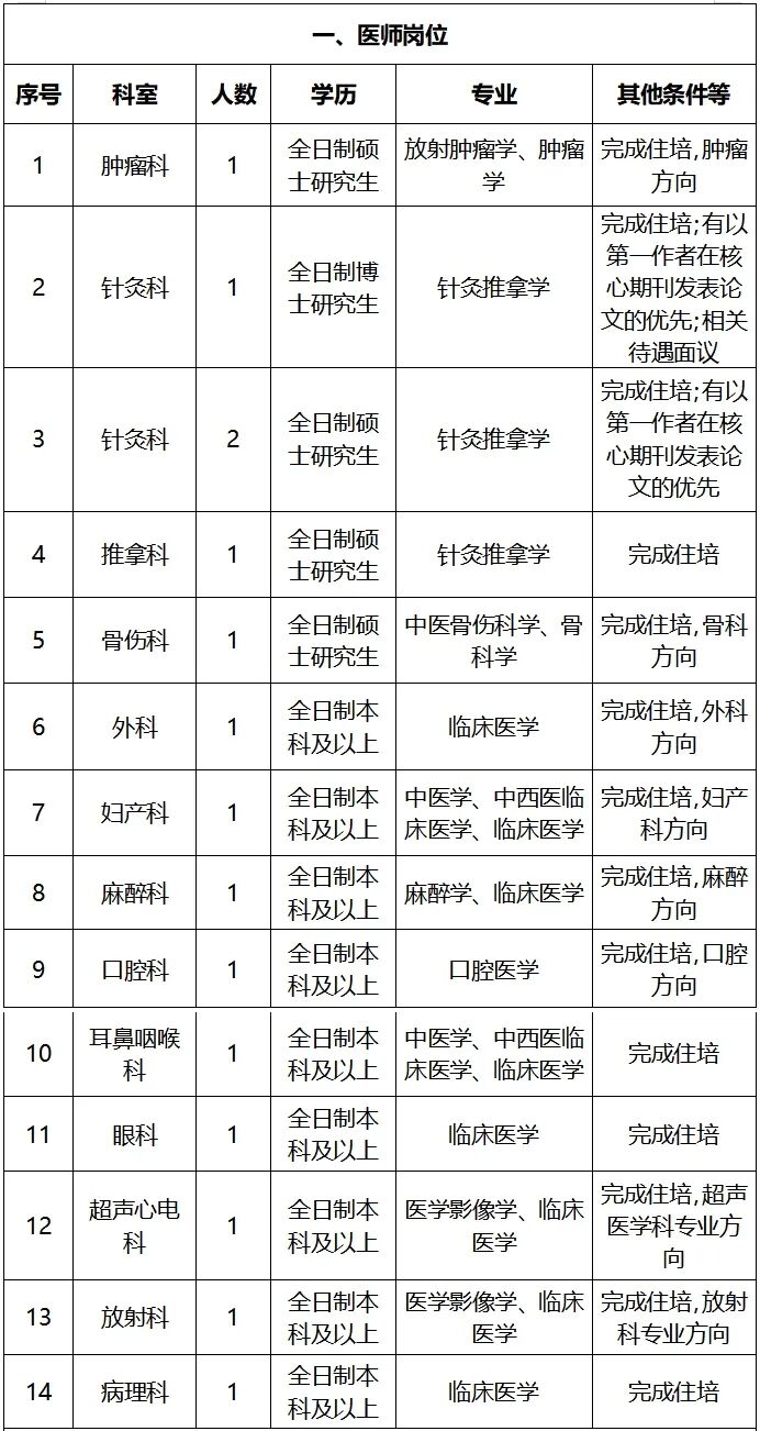 注:2026年應(yīng)屆畢業(yè)生學歷學位證必須在2026年7月前取得;要求完成住培的,住院醫(yī)師規(guī)范化培訓合格證必須在入職前取得(2026年完成住培的入職前必須通過國家組織的住院醫(yī)師規(guī)范化考試)。