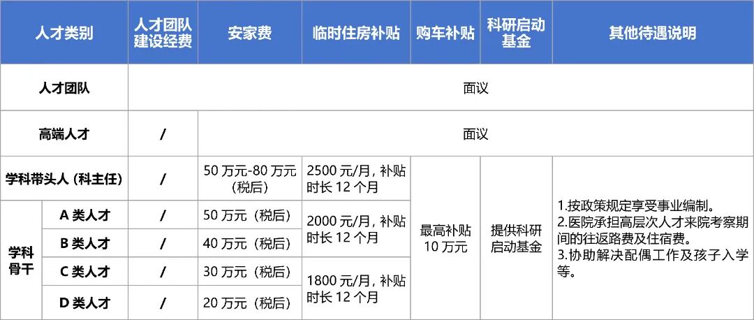 聘用為急需緊缺專(zhuān)業(yè)崗位醫(yī)師(緊缺專(zhuān)業(yè)包括:重癥醫(yī)學(xué)科、麻醉科、感染性疾病科、兒科、急診醫(yī)學(xué)科、病理科、精神科、產(chǎn)科、神經(jīng)外科、超聲科)的碩士研究生或符合“雙一流”建設(shè)高校及“雙一流”建設(shè)學(xué)科碩士研究生,給予5-10萬(wàn)安家費(fèi)。